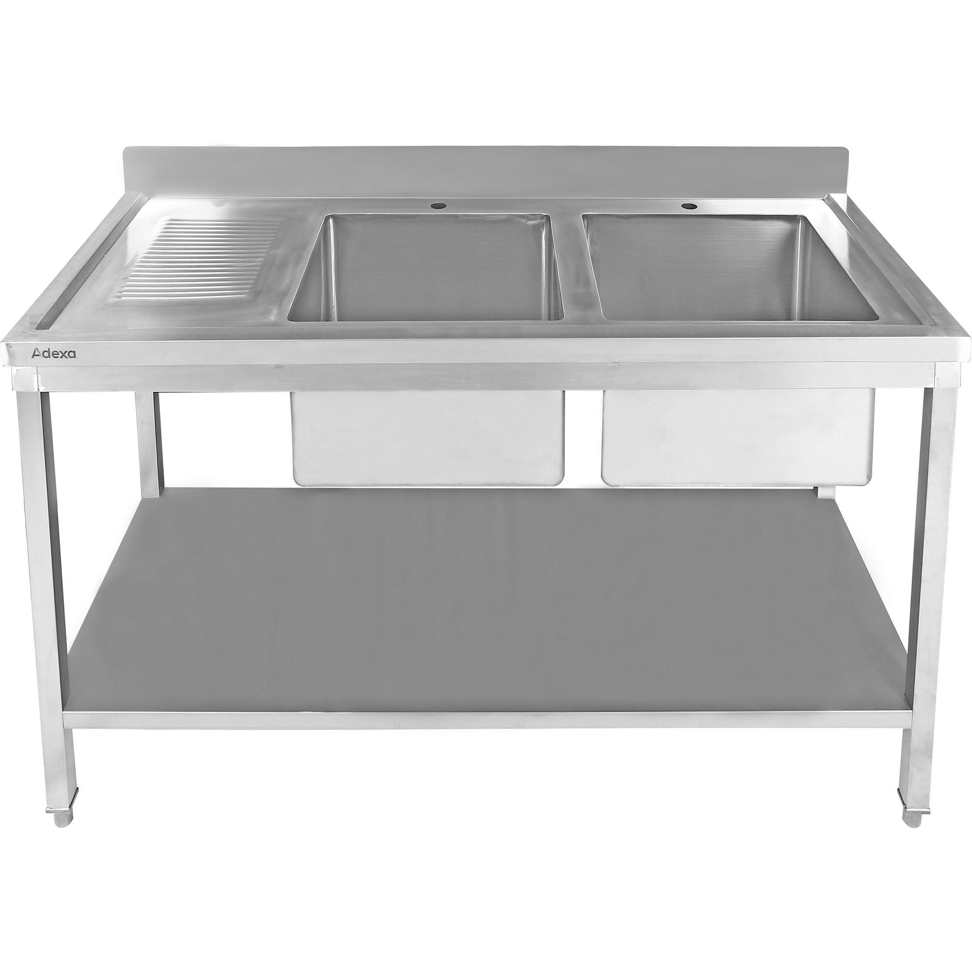 Tämä on erinomainen hinta-laatusuhde ammattilaisille tarkoitettu kaksinkertainen ravintolapesuallas. Vankka, korkealaatuinen, täysin ruostumattomasta teräksestä valmistettu ammattilaisallas, joka täyttää ruokapalvelu- ja ravintola-alan korkeat laatuvaatimukset. Ei sinkittyjä osia, kuten halvoissa vaihtoehdoissa markkinoilla! Ruostumatonta terästä oleva rakenne 1 esiporattu hanan reikä per allas Säädettävät jalat Takalevy 100 mm Toimitetaan osissa Katso tarkemmat tiedot kohdasta ”Tarkemmat tiedot”.