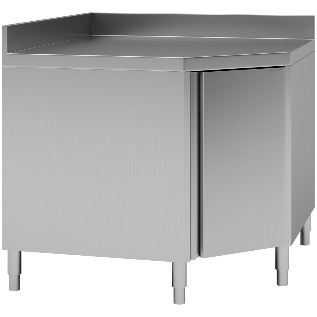 Laadukas ammattimainen työtason kulmakaappi, joka sopii itsenäiseksi kulmayksiköksi tai yhdessä muiden keittiökaappien tai työtasojen kanssa, joiden syvyys on 600 mm. Ihanteellinen ravintoloihin tai muihin suurtalouskeittiöihin. Etuosat: 600 mm Täysin ruostumatonta terästä Säädettävät jalat Vahvistettu työskentelypinta Saranoitu ovi