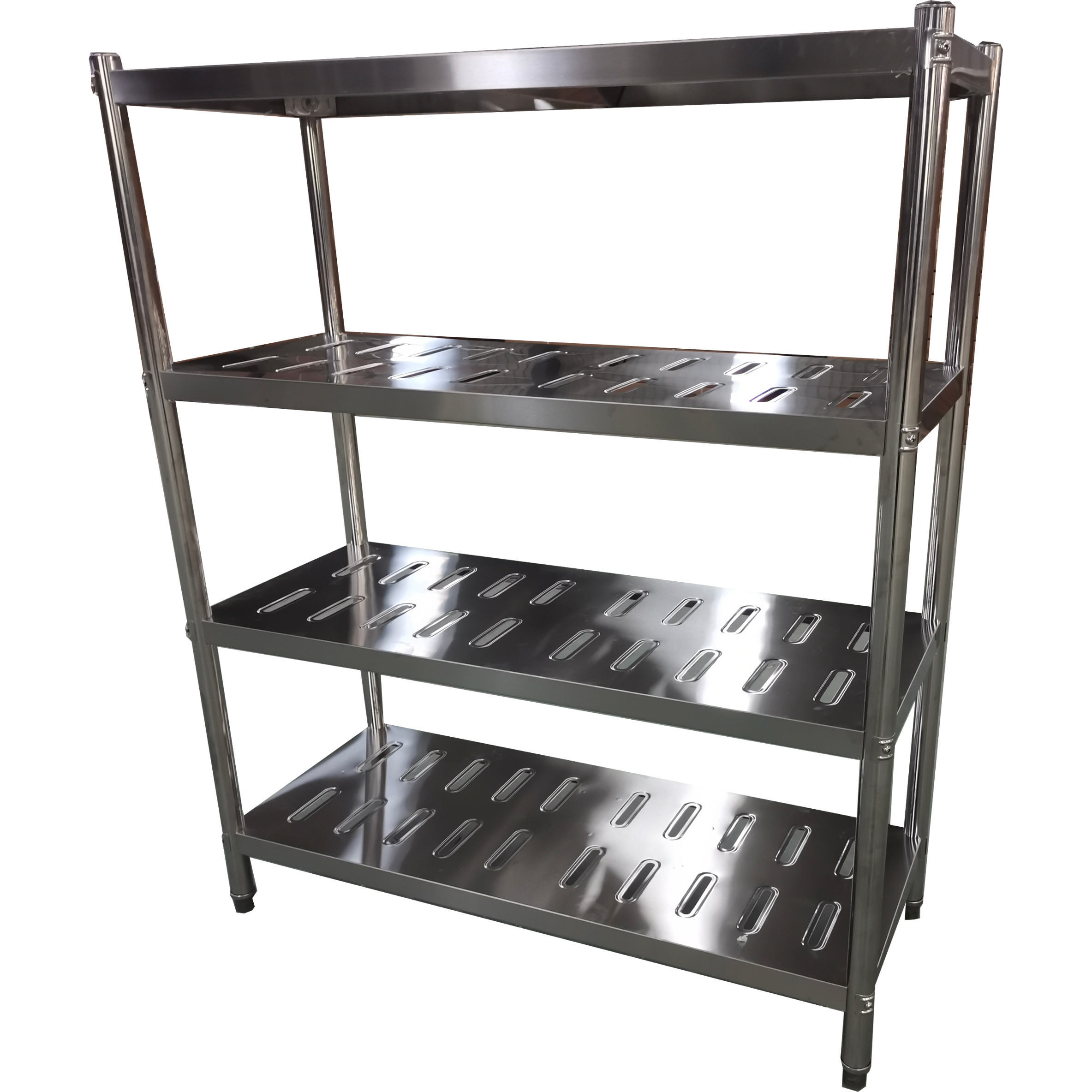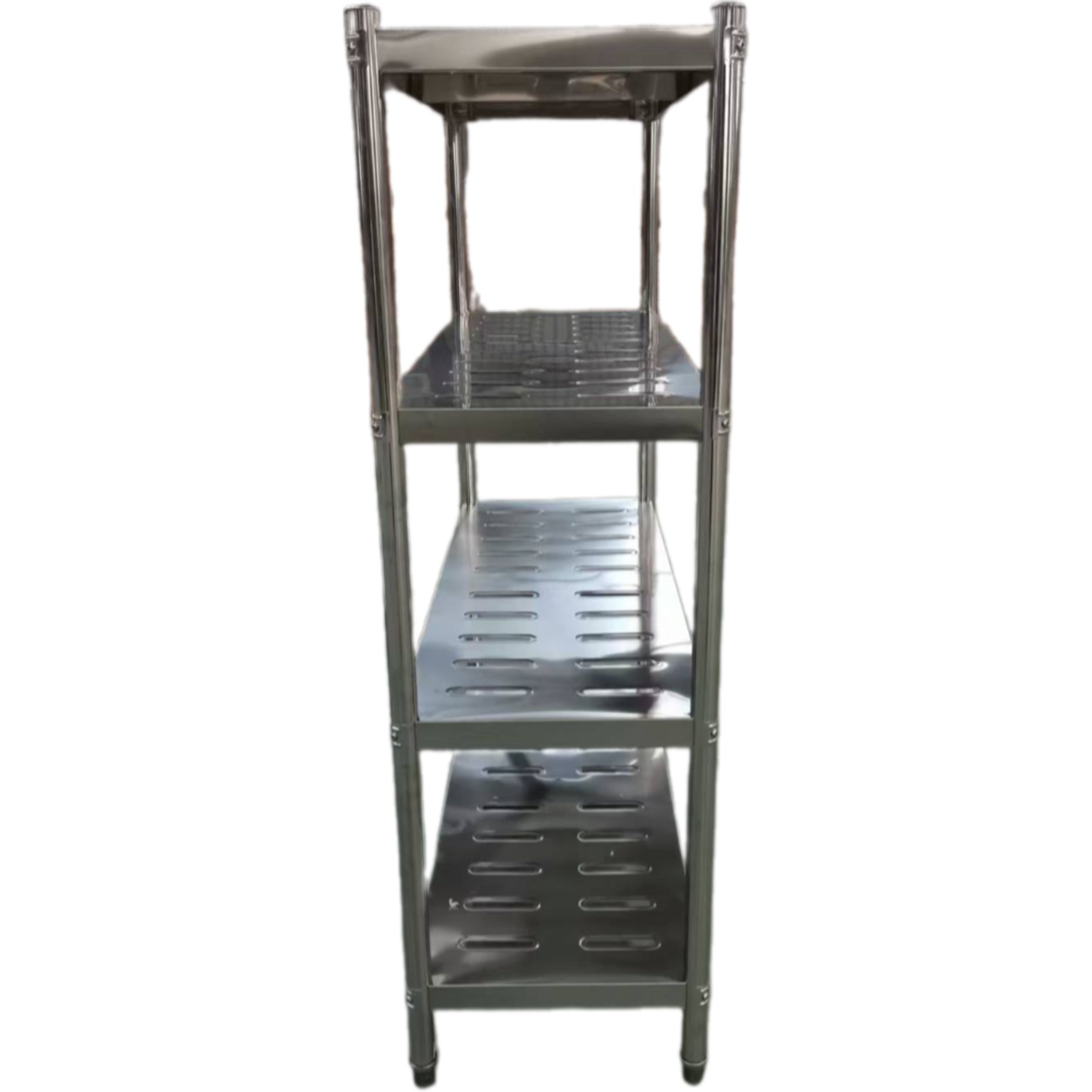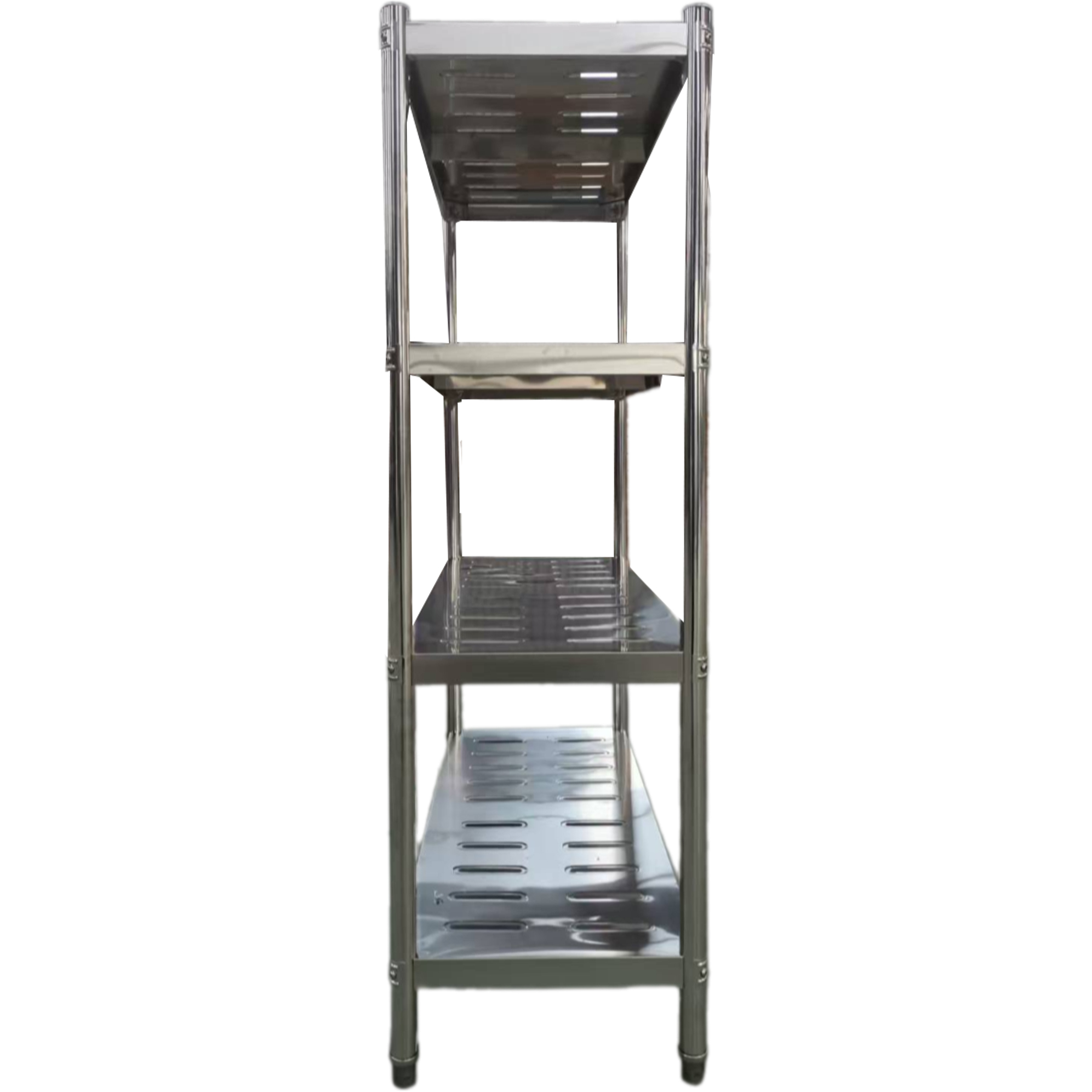 Tämä vankka massiivinen ruostumattomasta teräksestä valmistettu kaupallinen hyllyjärjestelmä on täydellinen varastointialueille, ravintolakeittiöihin tai mihin tahansa tyhjään seinään, johon tarvitset lisää säilytystilaa. Tämä teollisuustason hyllystö on valmistettu kestävästä ruostumattomasta teräksestä maksimaalisen pitkäikäisyyden takaamiseksi. Olipa sinulla sitten ravintola, varasto, sairaala tai hotelli, tämä hyllypaketti varmasti täyttää tarpeesi. Jokainen vahvistettu hylly on testattu kestämään enintään 200 kg tasaisesti jakautunutta painoa. Yksityiskohtaiset tiedot löytyvät kohdasta ”Erityistiedot”.