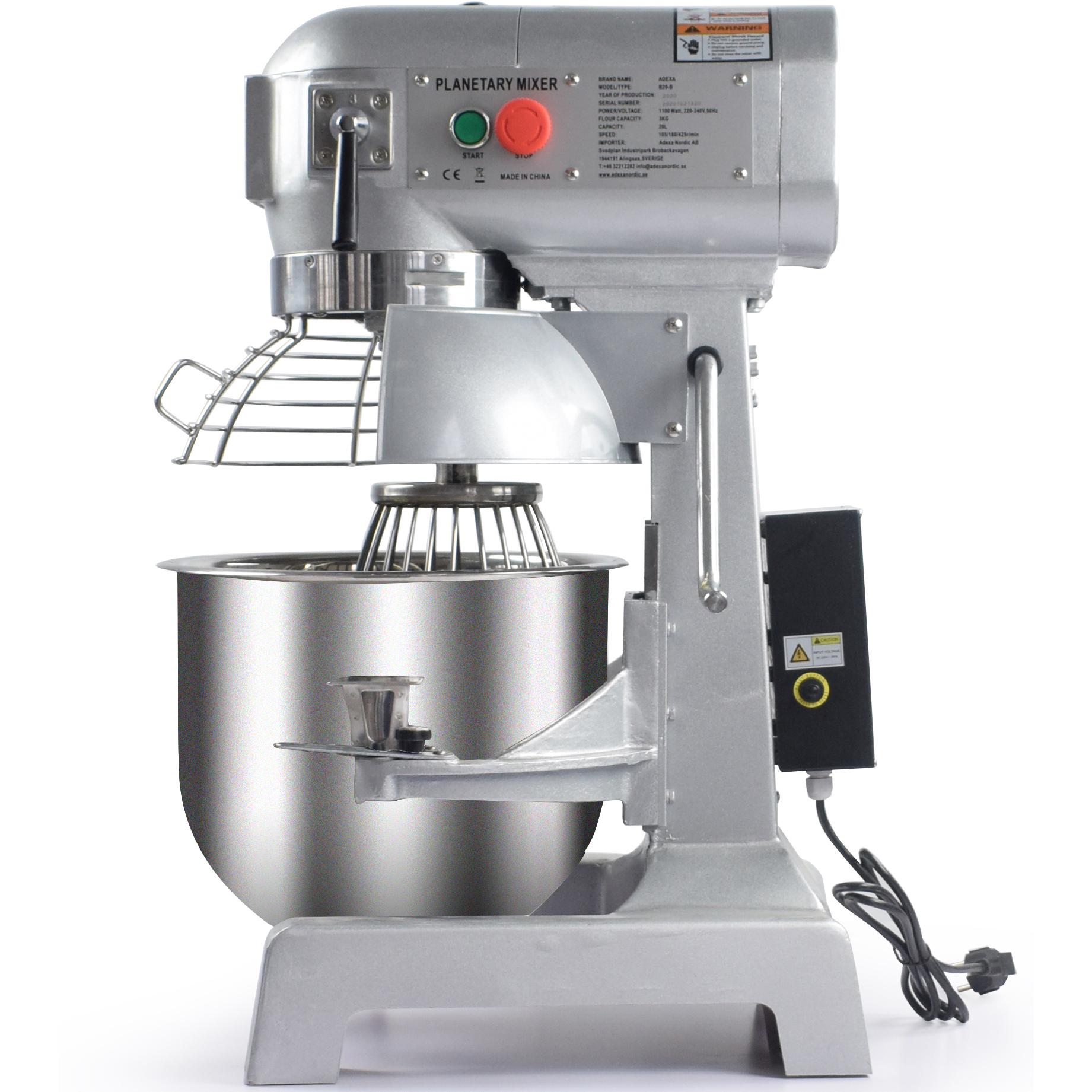 | Mukana | Roiskesuoja, Vispilä, Taikinakoukku, Tasalyöntäjä (ruostumaton teräs) |