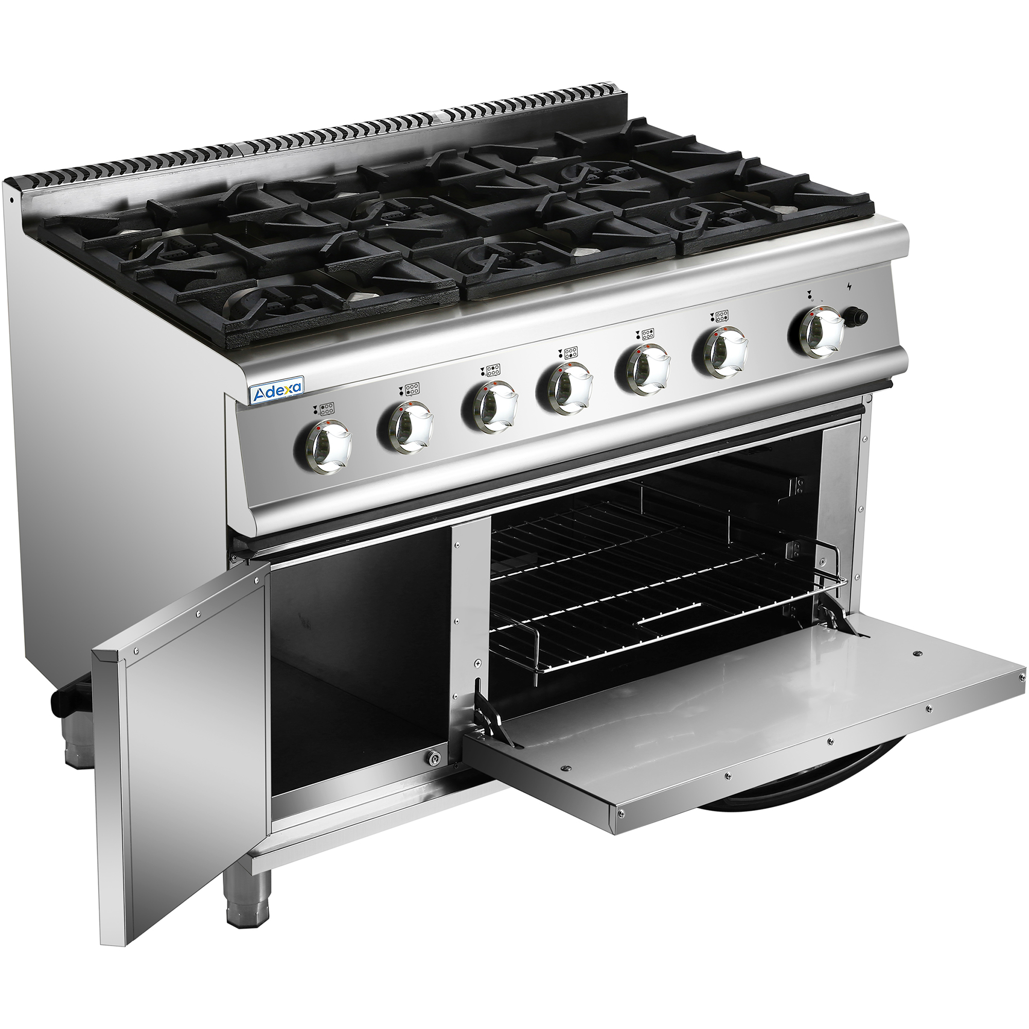 Vankkarakenteinen, korkealaatuinen 6-polttimoinen kaasuliesi-uuni, joka on valmistettu ruostumattomasta teräksestä. Tämä kaasuliesi-uuni sisältää 6 korkealaatuista poltinta, joissa on liekinvarmistus, valurautaiset pannutuet ja kromipolttimet. 6 poltinta Jokainen kaasupoltin tarjoaa lämmönsäästöä, toimien itsenäisesti muista. LPG-kaasu: 2800-3700Pa Liekinvarmistus Kromipolttimet Valurautaiset pannutuet Ruostumaton teräsrunko Asiakirjat Klikkaa tästä ladataksesi käyttöohjeen. Katso ’Määrittelyt’ alta saadaksesi tarkempaa tietoa.